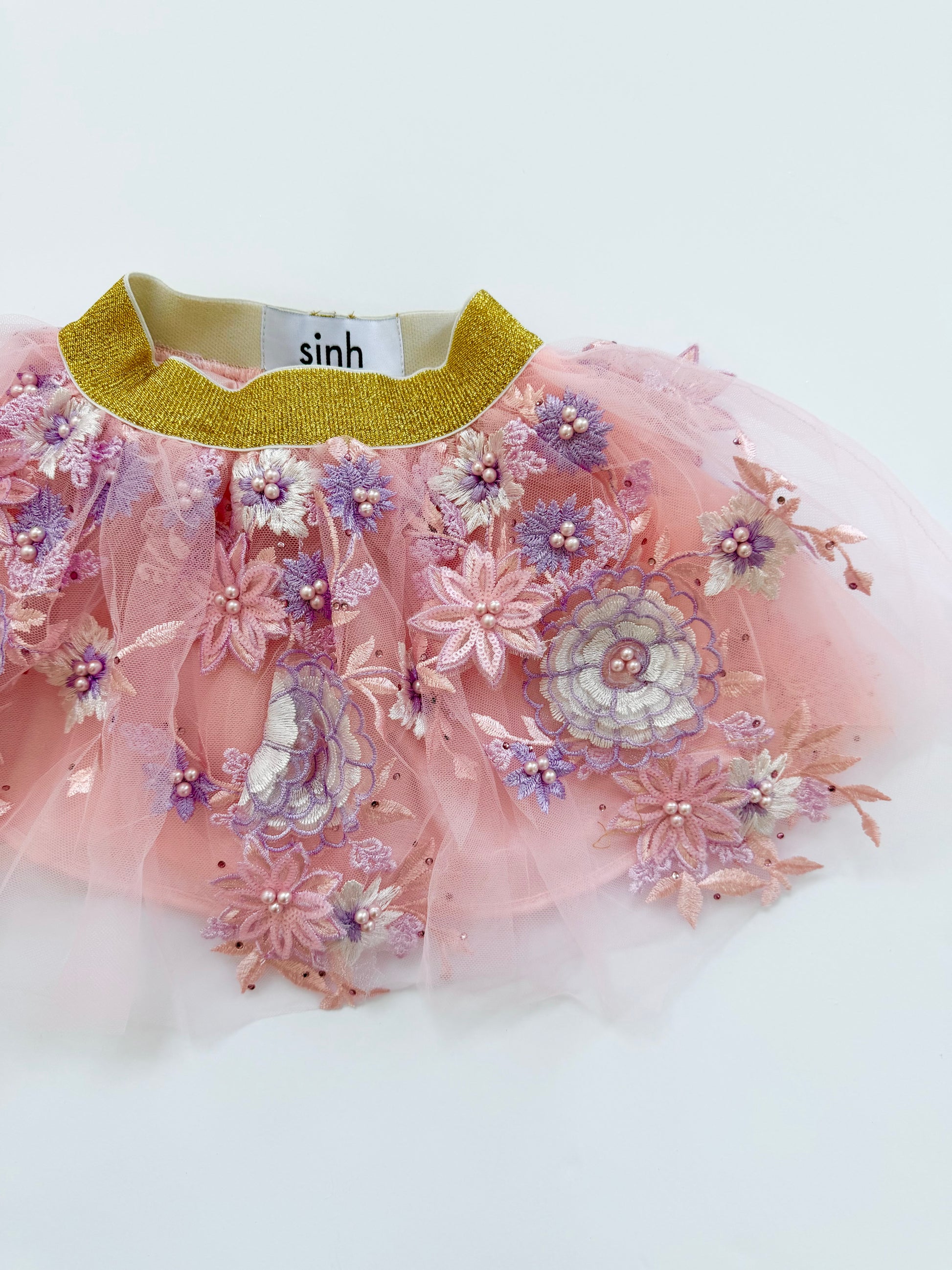 TUTU SKIRT SIZES: (Made with elastic metallic gold waistband and 3D embroidered lace fabric)