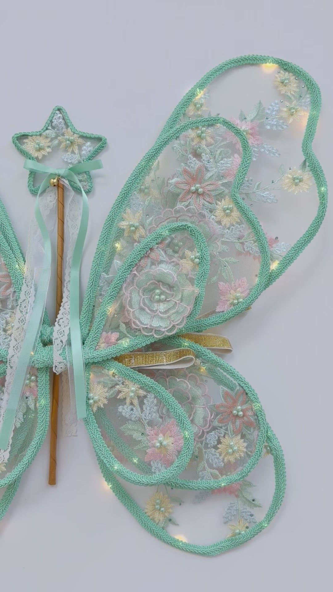 🦋 🌸 🦋 Welcome to my 🦋 atelier—a space where craftsmanship, artistry, and imagination meet. Bring a little magic into one's world with these handcrafted LED Fairy Wings, beautifully made from specialty 3D embroidered lace. Each wing features built-in warm LED lights that gently illuminate the wings for an enchanting glow—perfect for parties, photoshoots, or pretend play.Â