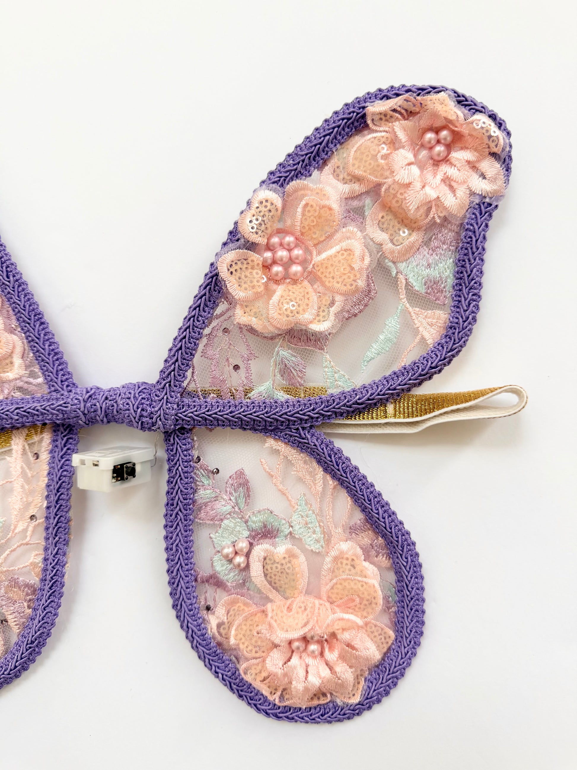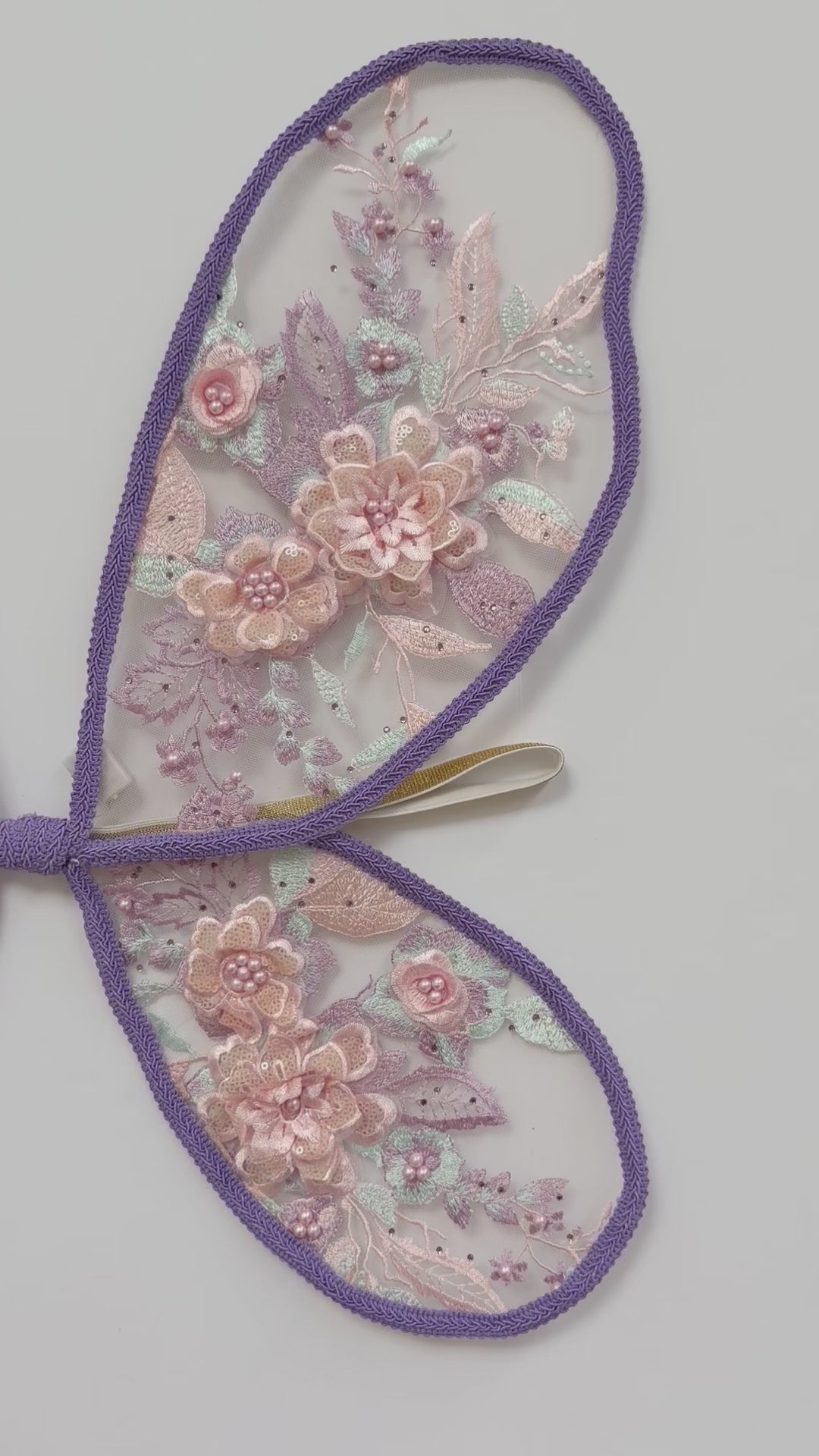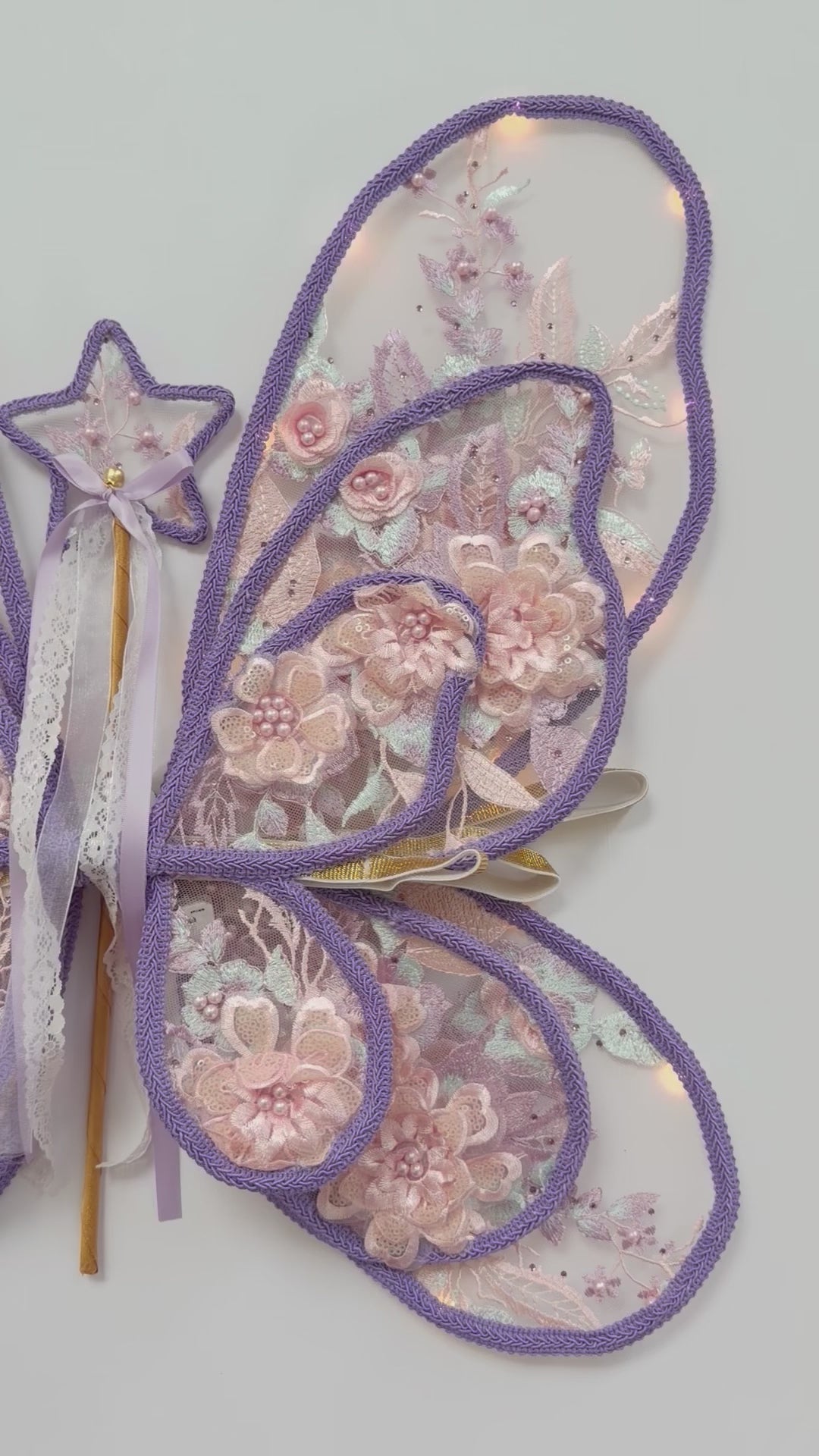 🦋 🌸 🦋 Welcome to my 🦋 atelier—a space where craftsmanship, artistry, and imagination meet. Bring a little magic into one's world with these handcrafted LED Fairy Wings, beautifully made from specialty 3D embroidered lace. Each wing features built-in warm LED lights that gently illuminate the wings for an enchanting glow—perfect for parties, photoshoots, or pretend play.